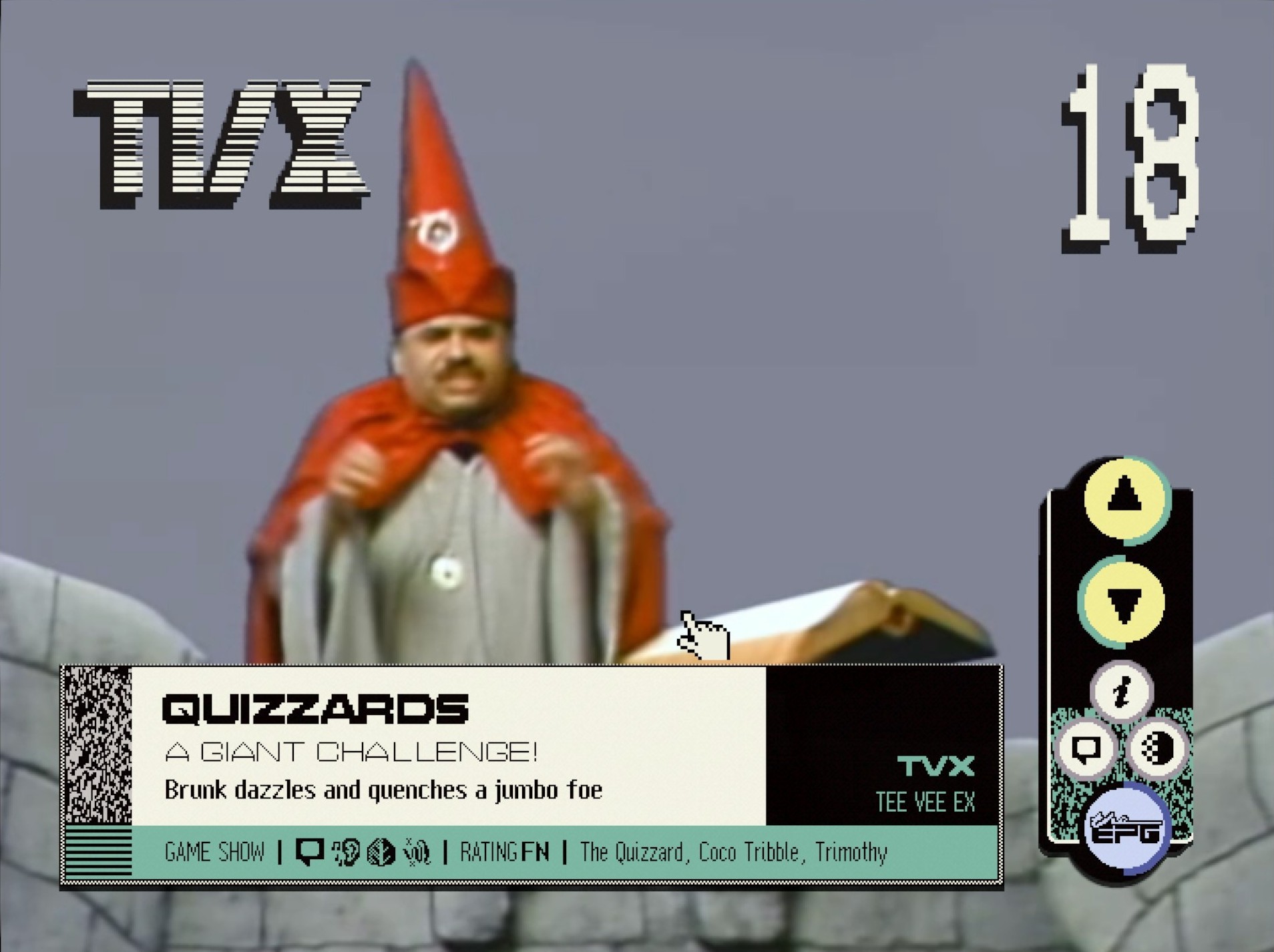In what may be a textbook example of recency bias, I started Blippo+ last week and it is now one of my favorite experiences of the past few years. I feel an ancient excitement bubbling up when Quizzards slides onto the TV guide. I'm going to start a Werf's Tavern fan blog. It is funny every single time I tune in to Video Cola, hear that perfect intro stinger, and watch my screen slowly fill up with soda. I want to see Bushwalker at AGDQ. God I love Bushwalker.