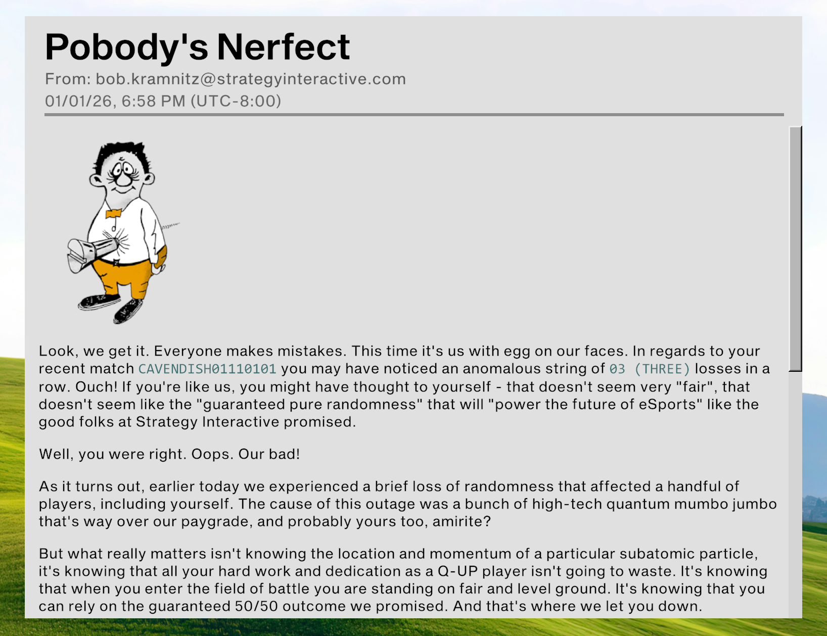 At Blizzard, I work on competitive, online games with vocal communities. Q-UP is a very, very funny game.